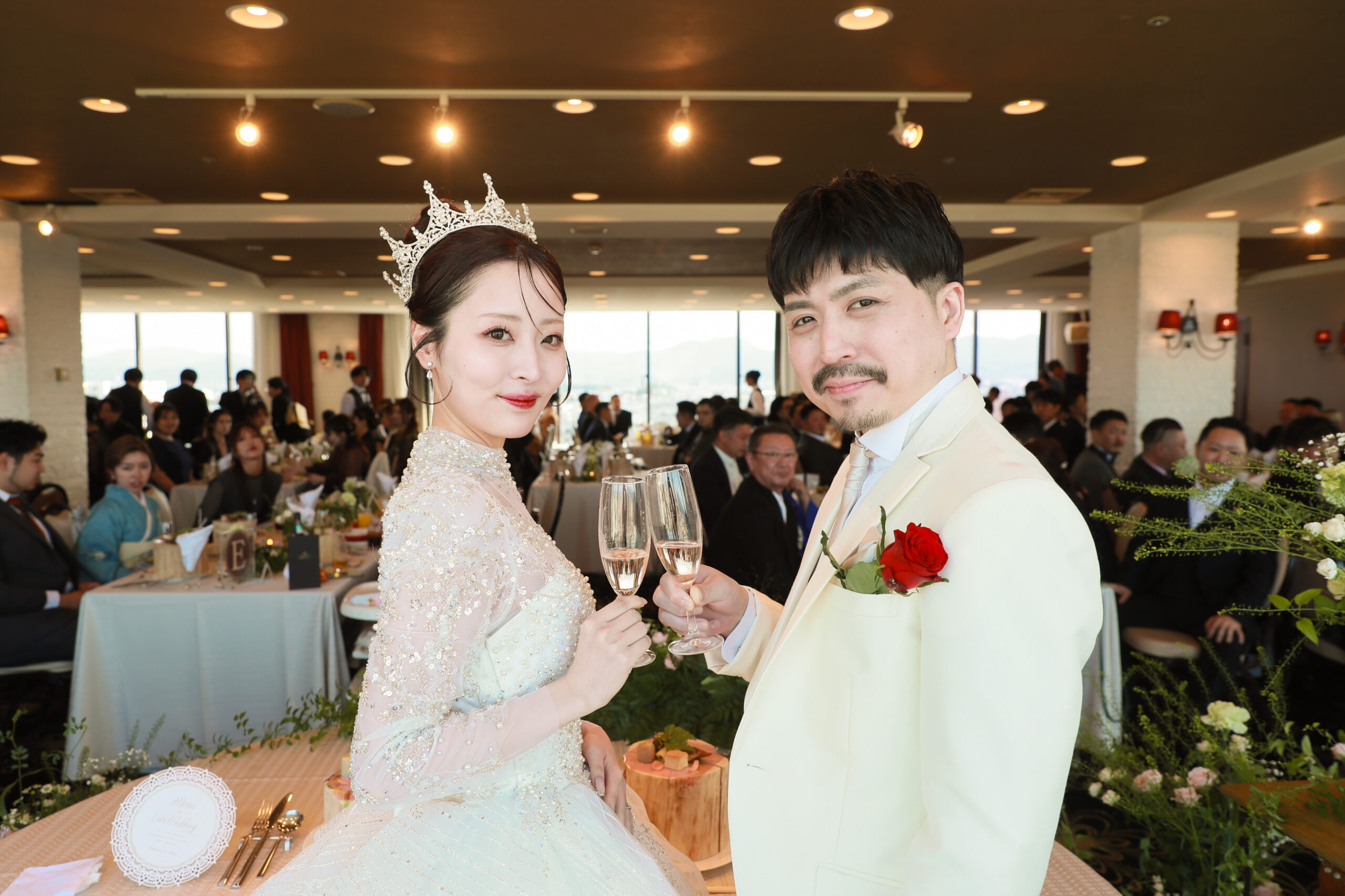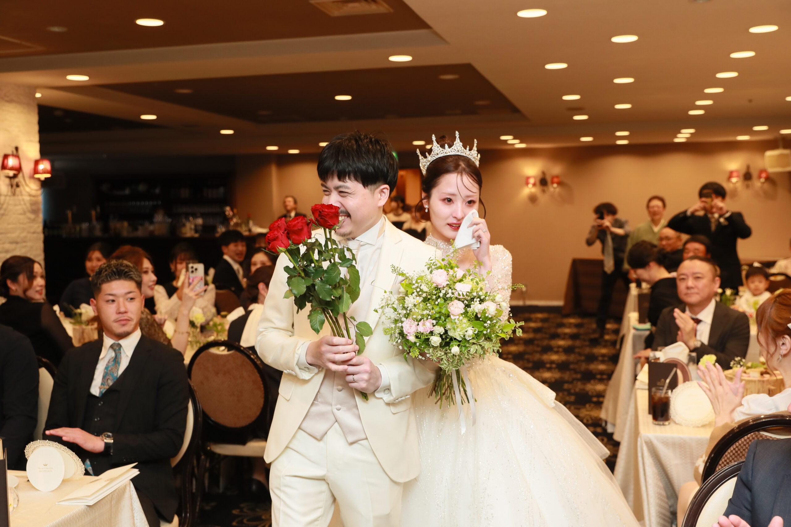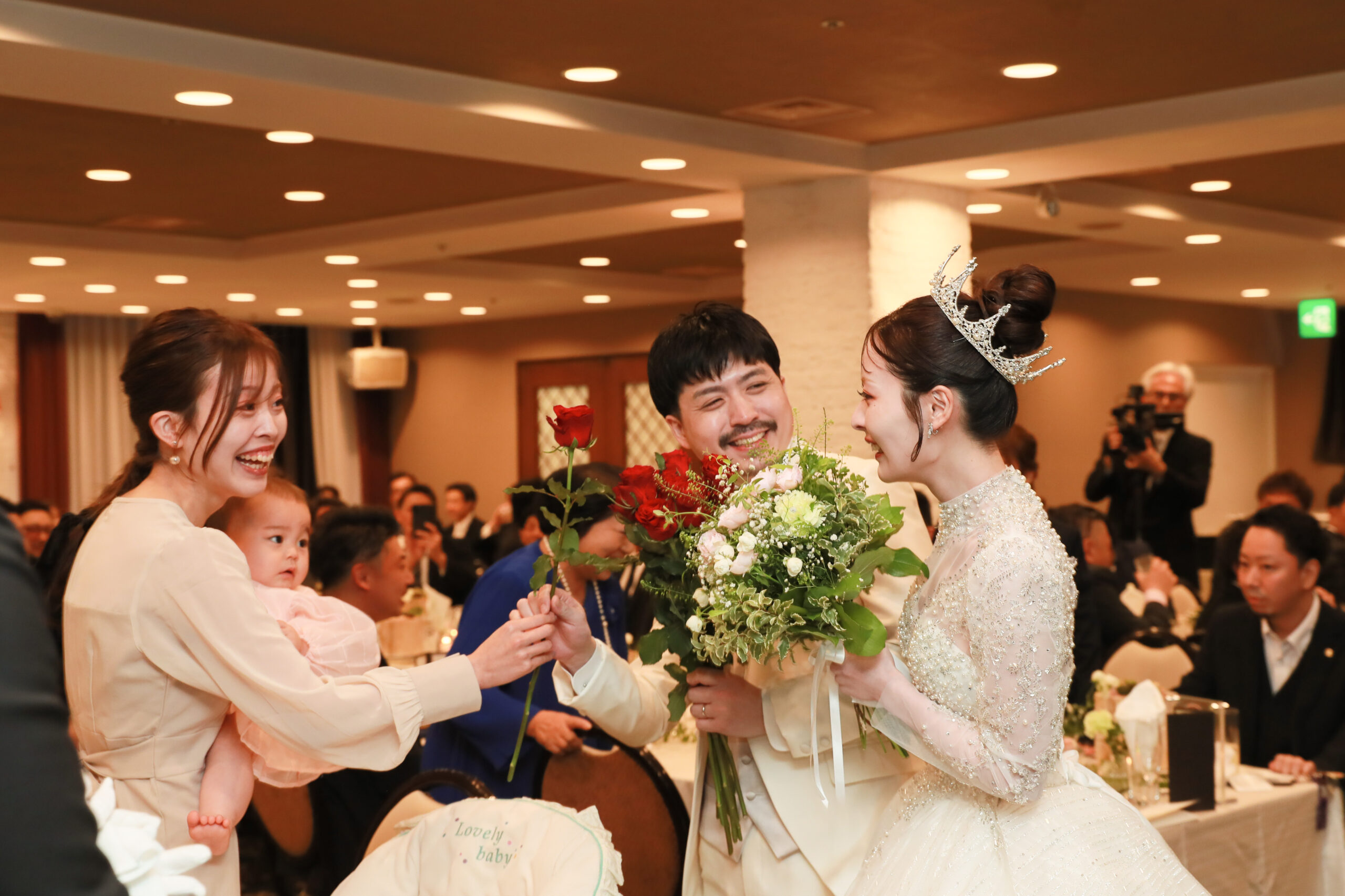 ゲストの祝福を受け取ったその花束を新婦へ贈り、会場全体が温かな一体感に包まれる、心に残るひとときとなりました