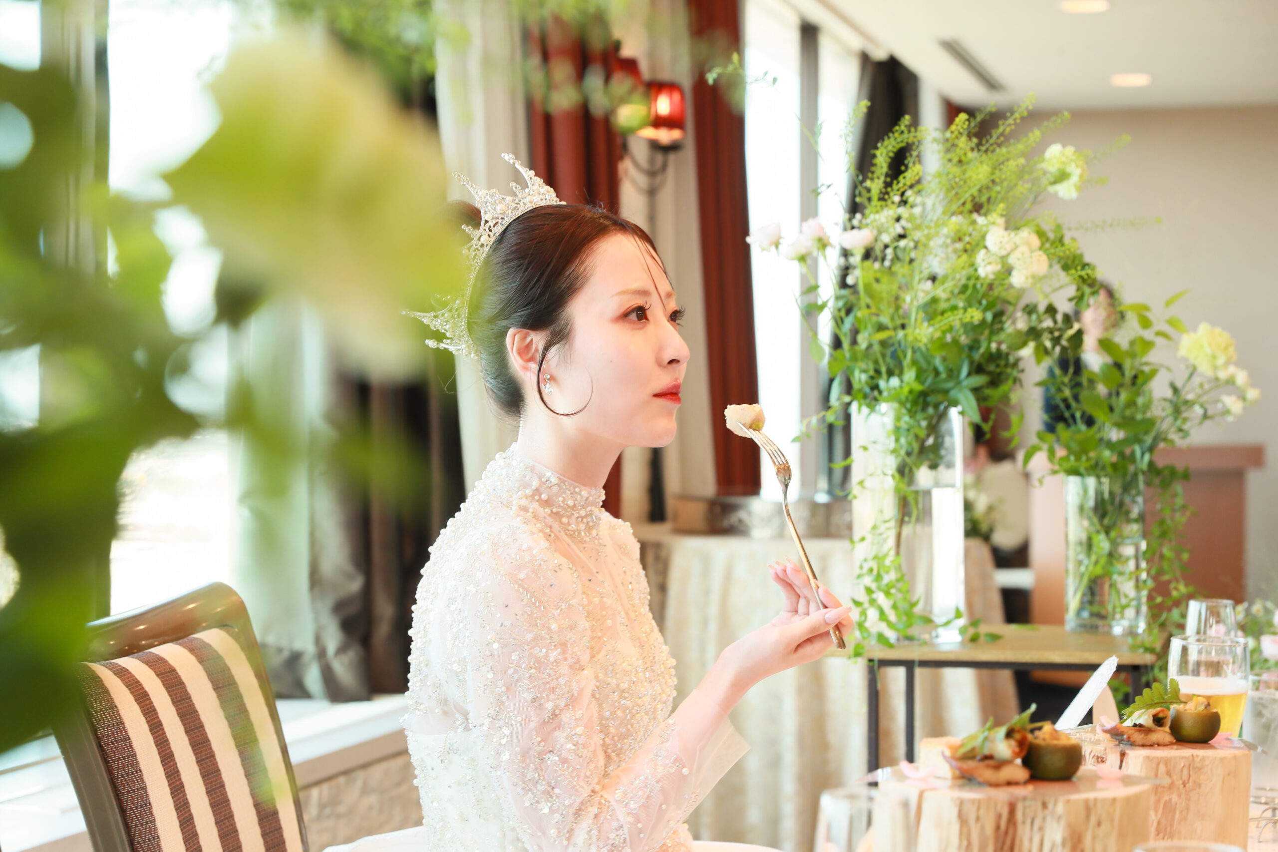 その様子を見守りながら新婦はお料理を頬張り、自然体な姿にゲストも思わず笑顔に💕