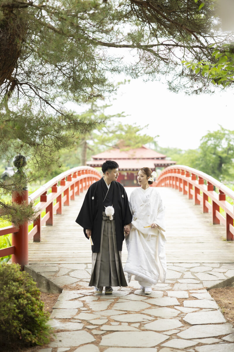 和と洋、それぞれの魅力を感じられるロケーションで、おふたりのさまざまな表情を残しました